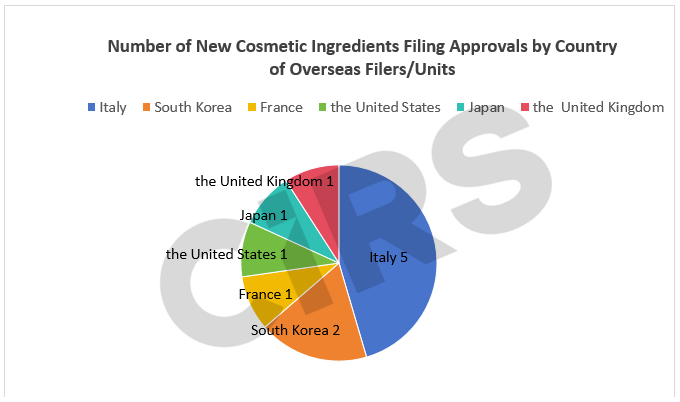 According to the analysis of new ingredient filing data, a total of 11 new cosmetic ingredients were filed by overseas enterprises, involving 7 companies from 6 countries, namely Italy, South Korea, France, the United States, Japan, and the United Kingdom.