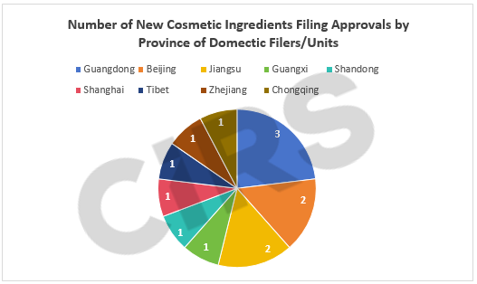 According to the analysis of new ingredient filing data, a total of 13 new cosmetic ingredients were filed by domestic enterprises in China, involving 13 companies across nine provincial-level regions. These regions include Guangdong, Beijing, Jiangsu, Guangxi, Shandong, Shanghai, Tibet, Zhejiang and Chongqing.