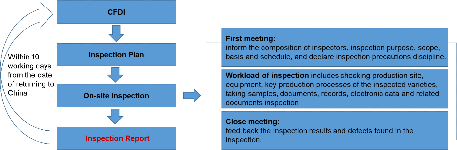 Center for Food and Drug Inspection of NMPA (hereinafter referred to as CFDI): responsible for the specific organization and implementation of overseas inspection of cosmetics.
