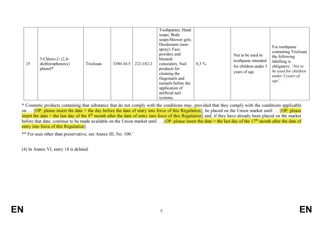 - List of Substances Restricted in Cosmetic Products (Appendix III);