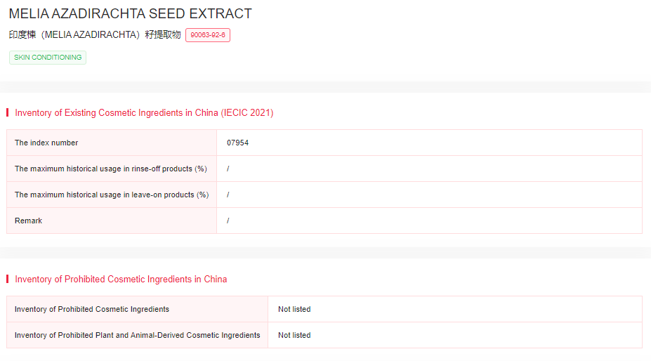 Substances including Benzophenone, Theophylline, Melia Azadirachta Seed Extract, Trimethylolpropane Triacrylate, Pentetic Acid, Pentasodium Pentetate are also listed in the Inventory of Existing Cosmetic Ingredients in China (IECIC 2021), if you would like to know more info about these substances or whether your substances are listed in the IECIC, please search our free cosmetic inventory search system – China CosIng 20.