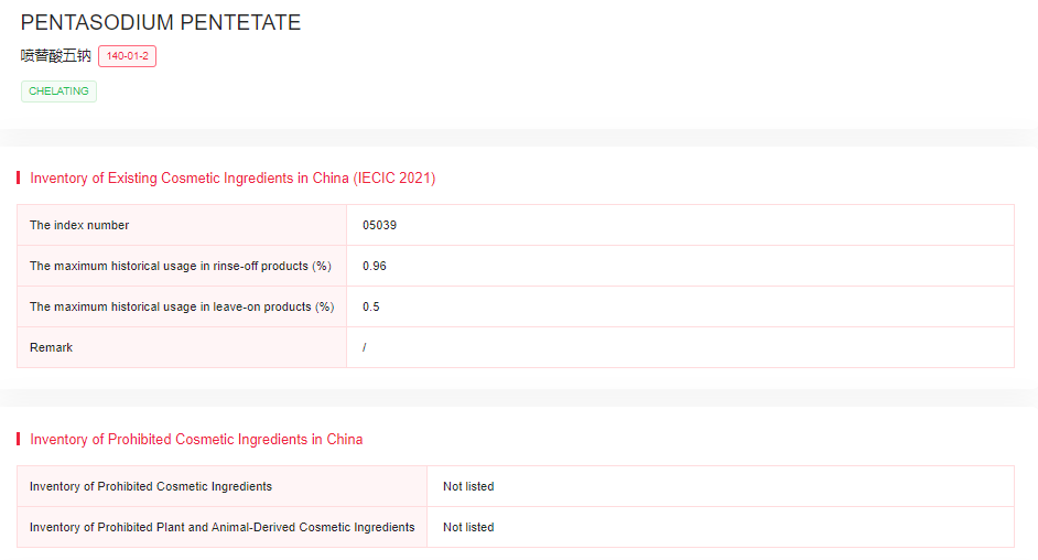 Pentasodium(carboxylatomethyl)iminobis(ethylenenitrilo)te traacetate; Pentasodium Pentetate (INCI) | 140-01-2 | IECIC 2021 |