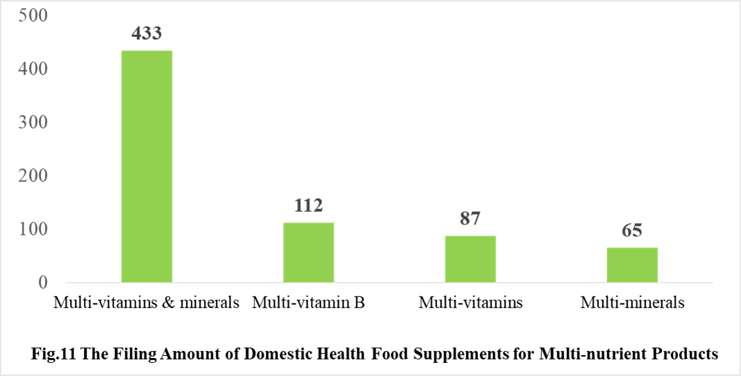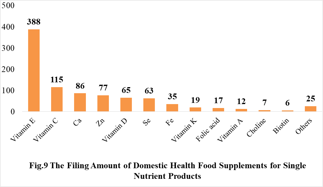 Among the domestically filed products in 2021, the most popular nutrition supplements are Vitamin C supplements, Calcium and Vitamin D supplements, Multi-vitamins & minerals supplements, which is 388, 188 and 433 respectively.