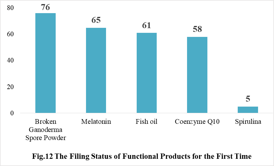 Ganoderma lucidum spore powder, melatonin, fish oil, coenzyme Q10 and spirulina products were transferred from registration to filing supervision for the first time in 2021, and the filing number is 76, 65, 61, 58 and 5 respectively.