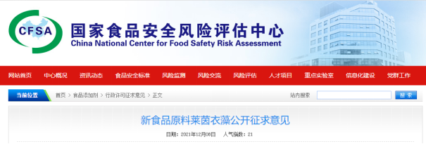 On 8 December, 2021, China National Center for Food Safety Risk Assessment (CFSA) opened public comment for Chlamydomonas reinhardtii . The deadline for public comments is 8 January, 2022.