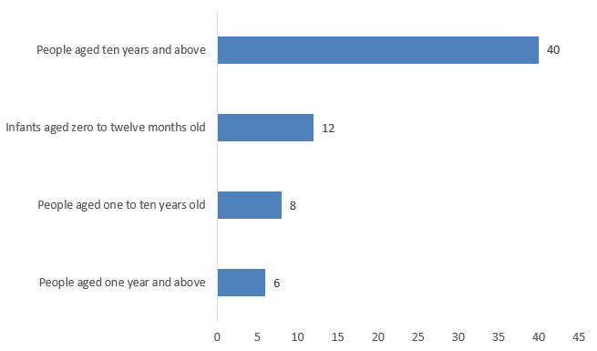 As shown in Figure 4 below, among the FSMPs approved for registration in 2024, the largest number of products were intended for people aged ten and above, totaling 40, which accounted for 61% of the total. The next were products intended for infants aged 0-12 months, totaling 12, which accounted for 18% of the total. Additionally, there were eight products intended for children aged 1-10 years, and six products intended for people aged one and above.