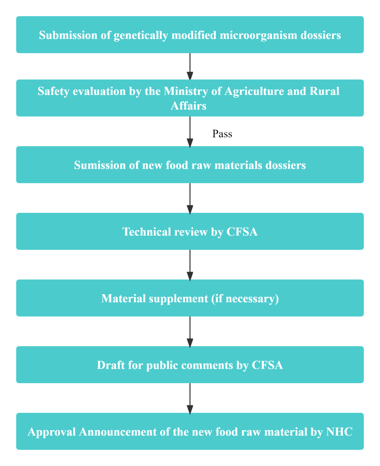 - National Health Commission (NHC): Responsible for the evaluation and approval for the final products derived from the genetically modified microorganisms, also recognized as the new food raw materials.