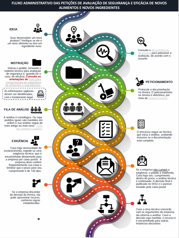 The safety assessment conducted by ANVISA constitutes a regulatory administrative procedure to evaluate the safety of novel foods based on technical-scientific dossiers submitted by applicants. During safety assessment, ANVISA verifies that the manufacturing process does not introduce or concentrate substances with potential adverse health effects, and confirms that the intended conditions of use do not exceed the established safety thresholds.