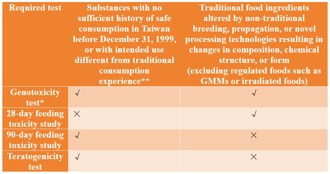 - Substances that, before December 31, 1999, had insufficient history of safe consumption in Taiwan, or are intended to be consumed in a manner different from traditional usage.