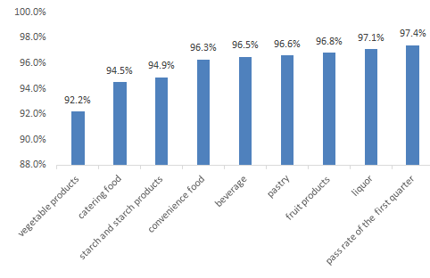 It is obvious that vegetable products are the hardest hit area of food safety, and are the food category with the lowest pass rate in the first, second and fourth quarters. Furthermore, the pass rate of convenience food, catering food, liquor, fruit products and starch and starch products in the four quarters of the sampling inspection are significantly lower than the average levels as well.