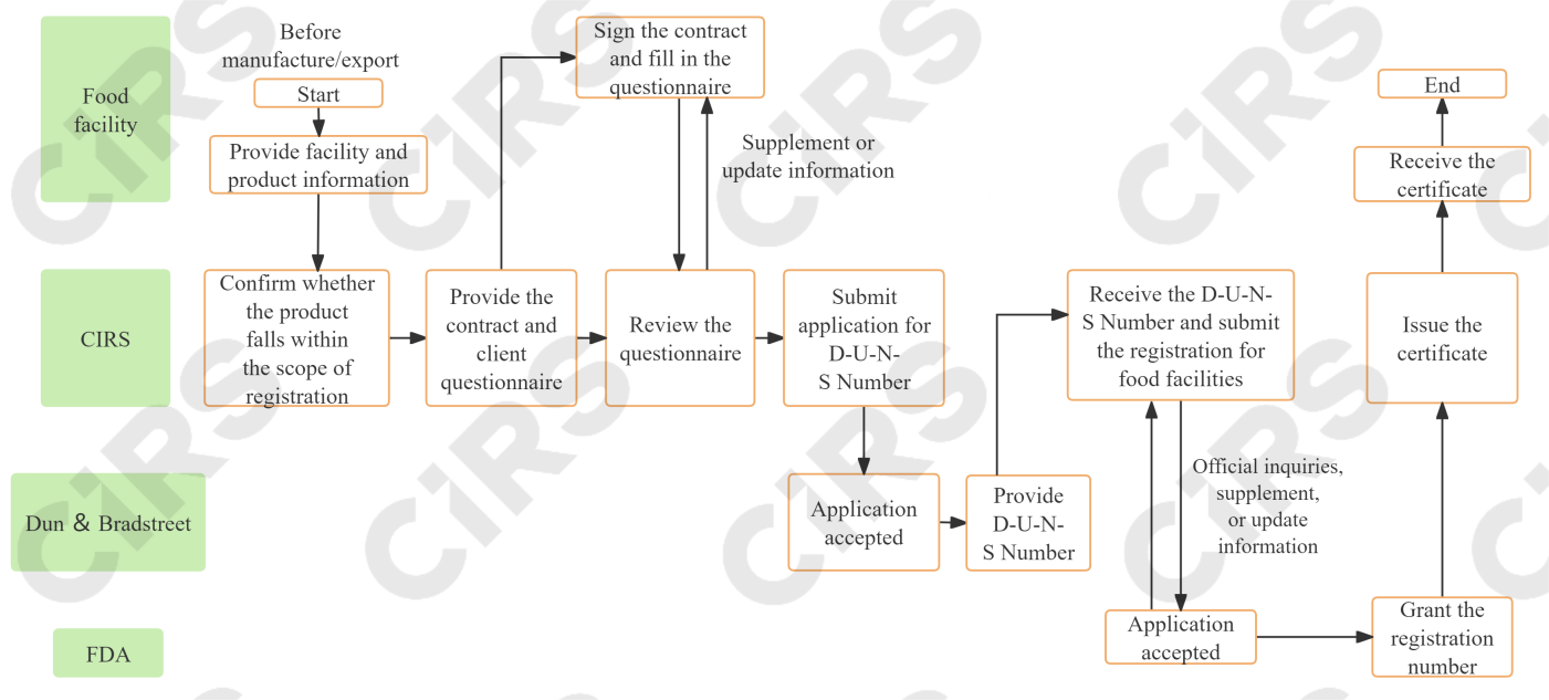 Facilities engaged in manufacturing, processing, packing, or holding food for consumption (including food additive, health food, etc.) are required to submit an registration to FDA according to the Federal Food, Drug and Cosmetic Act (FD&C Act). In addition, it is required to renew the registration of your facility with FDA every other year during the period beginning on October 1 and ending on December 31 of each even-numbered year, and ensure to allow FDA facility inspections as permitted by the FD&C Act.